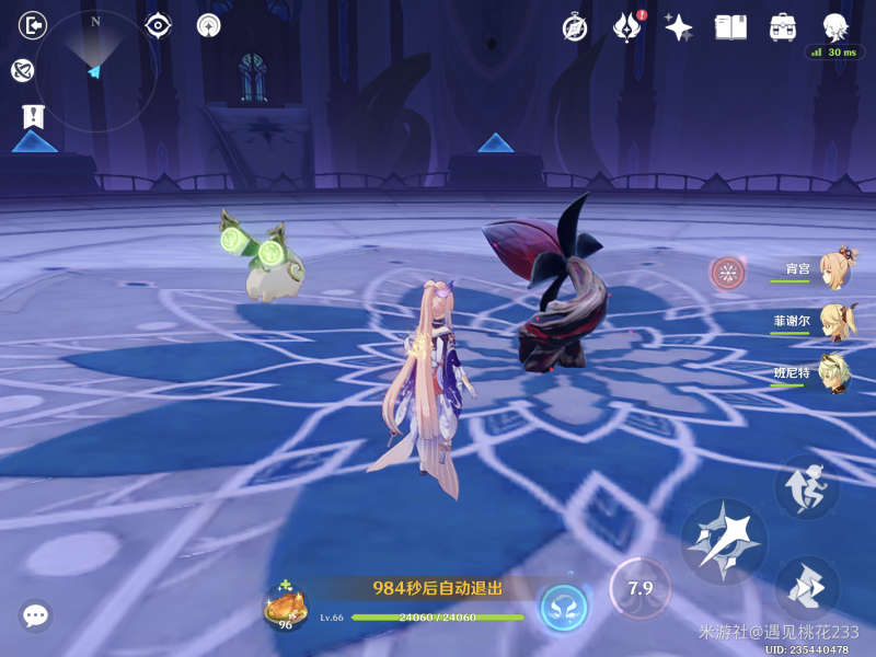 第一步破盾,击打地上的小怪物掉能量块(红血条的用水元素a一下就掉能量块,蓝血条用火)拾取能量块给草神送我们的小精灵充能他会帮我们破盾,我们只管跑躲技能就行,这个小精灵很智能的,他会自动瞄准帮我们破盾。然后小精灵充满能量后会提示可以使用特殊技能了,瞄准散兵头(会有提示打哪里的)点一下